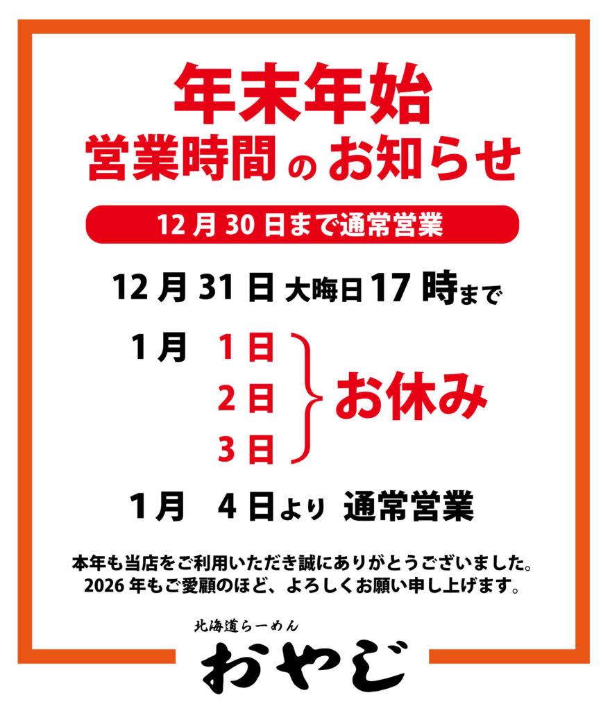 いつもご利用ありがとうございます。相模原市の本店と田名店の年末年始の営業時間のご案内です。